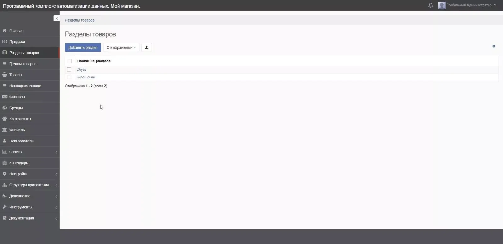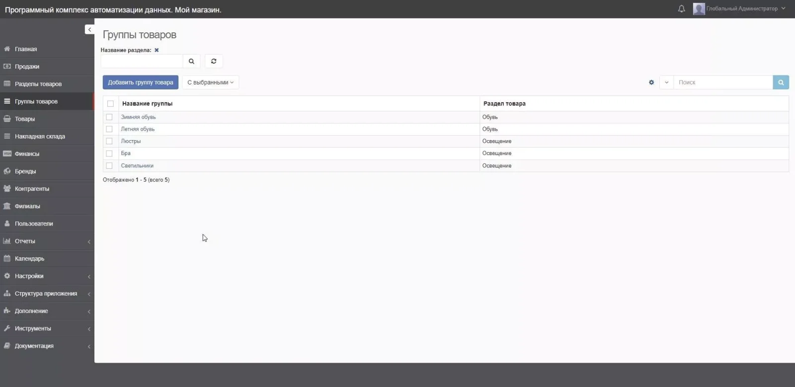 Распределение продаваемых товаров по разделам и группам для более качественного учета