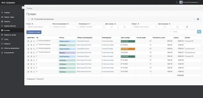 Учет путевок по каждому объекту размещения. Фильтрация путевок по свободным, забронированным, проданным номерам. Графики заездов. Отдельный список туристов по каждой путевке.