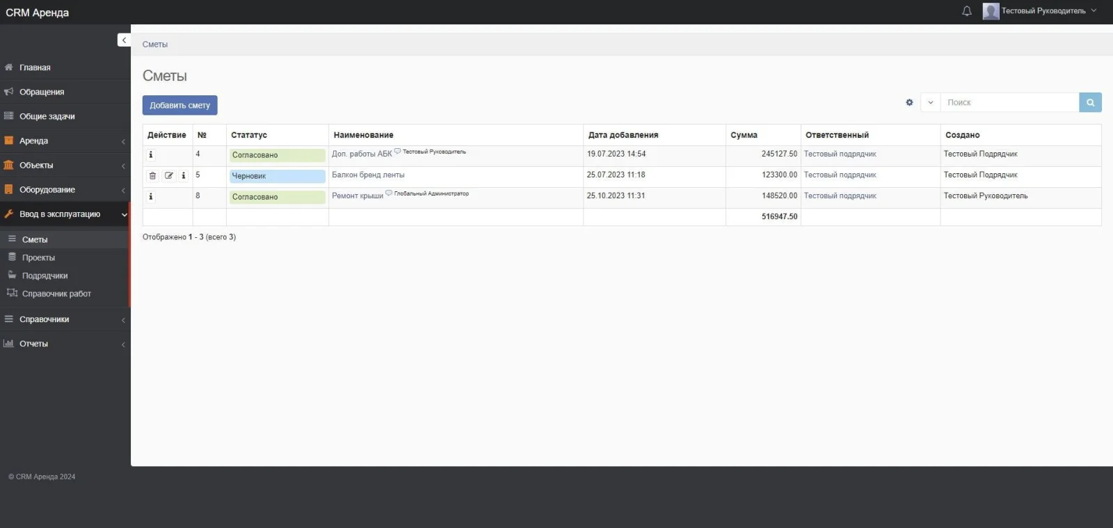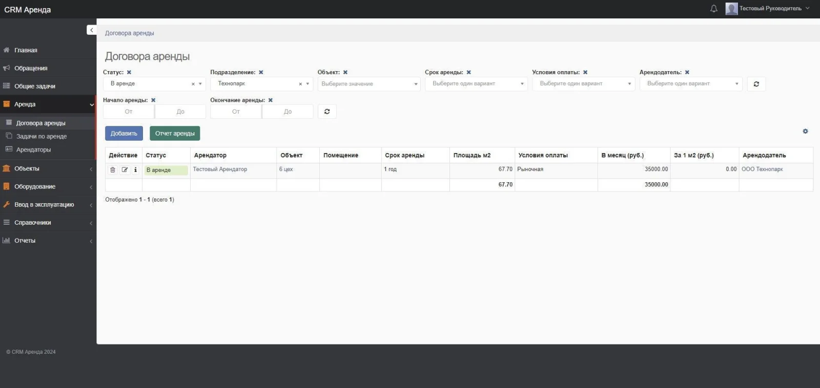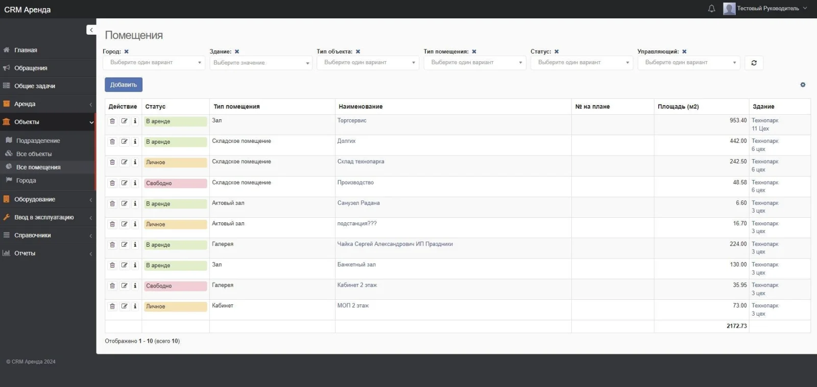 Решение на базе CRM Руководитель для учета помещений сдаваемых в аренду.
