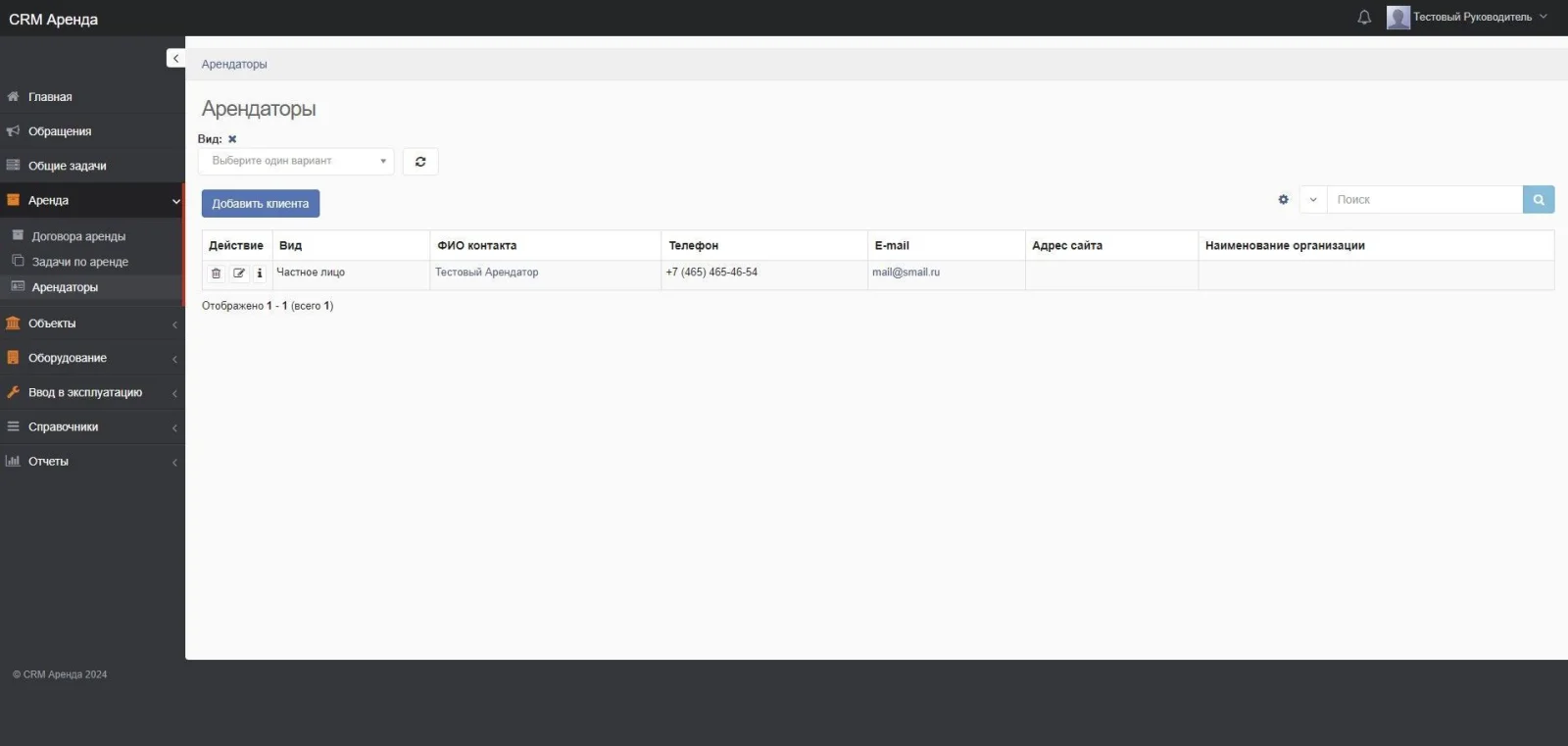 - Учет арендаторов, физические и юридические лица