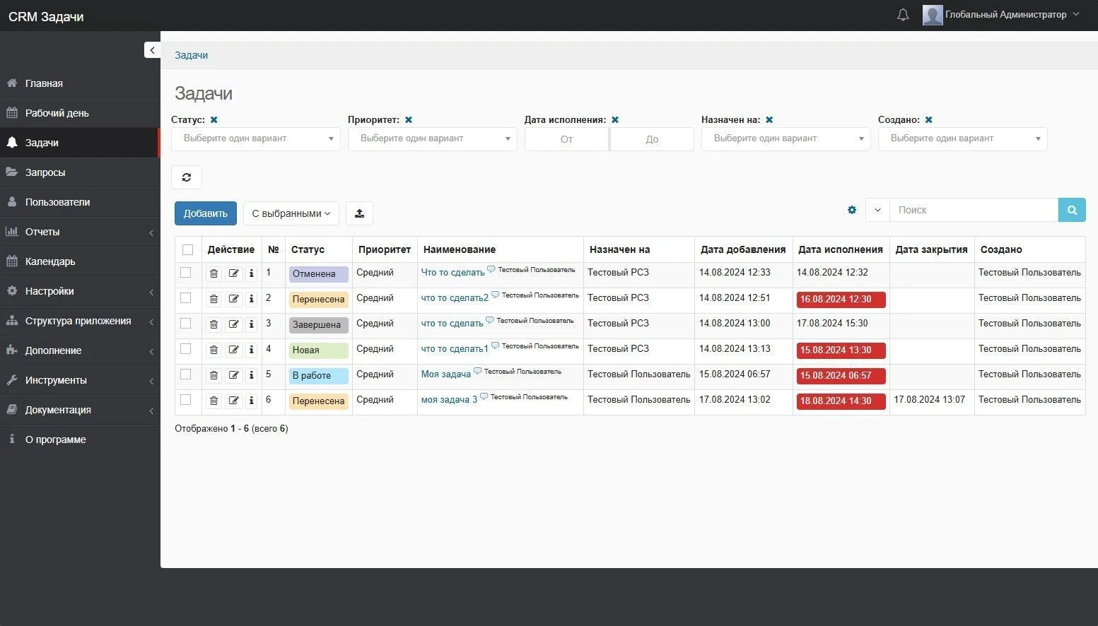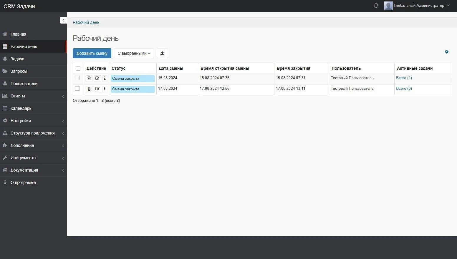 Решение на базе CRM Руководитель для учета рабочего времени и постановки задач сотрудникам.