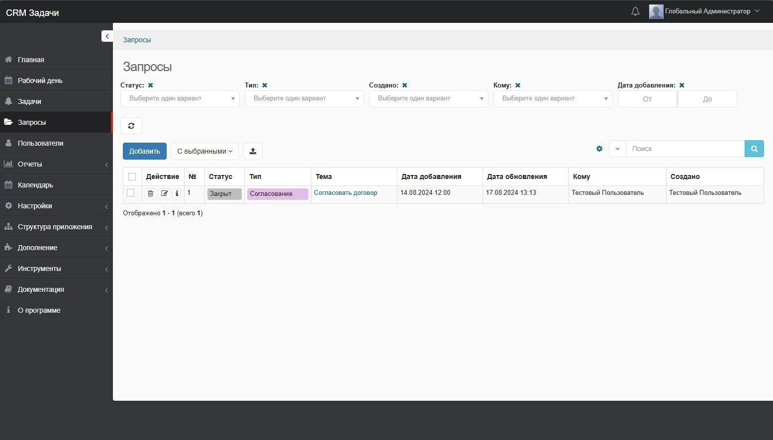 Создание пользователей системы, разграничение прав доступа (руководитель, менеджер и др.)