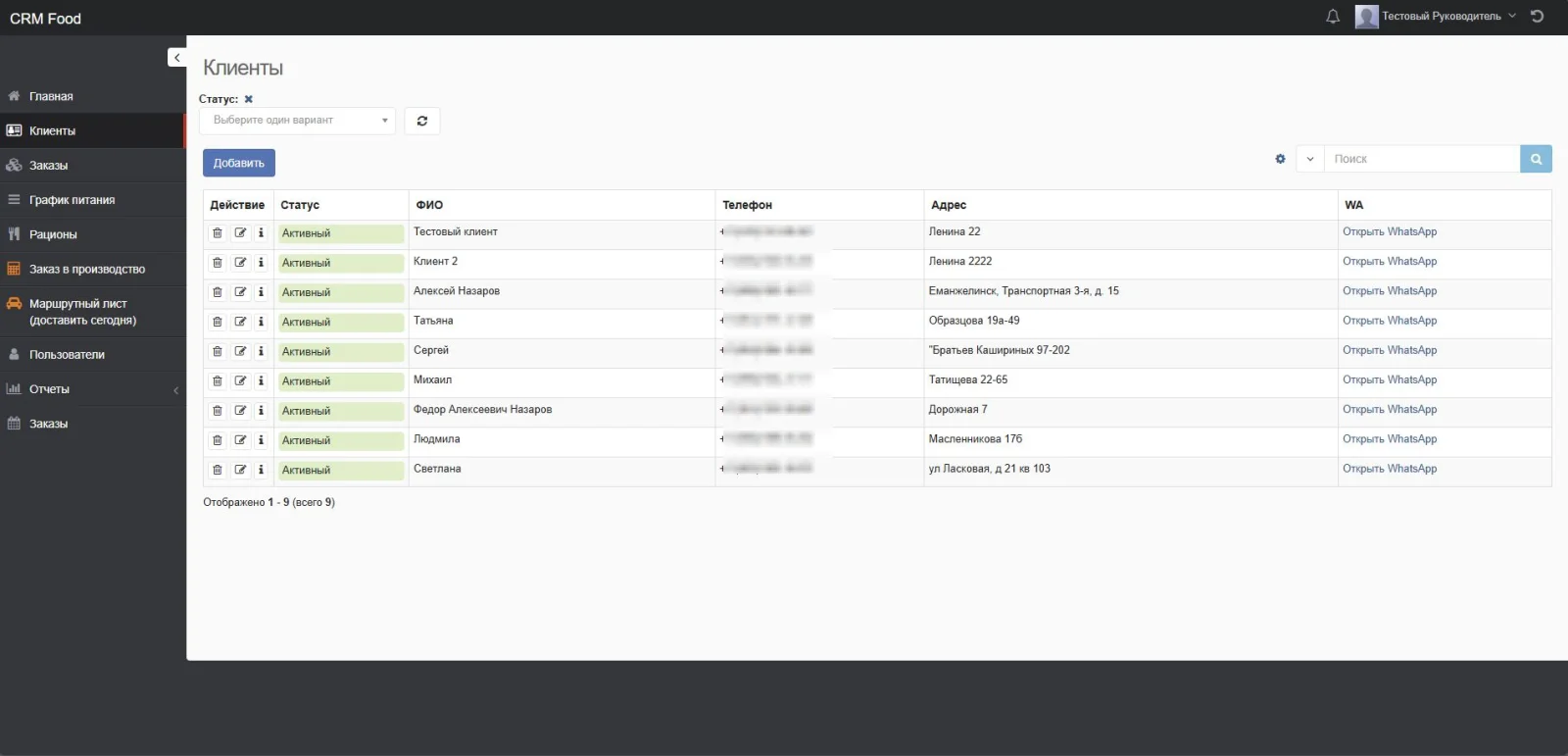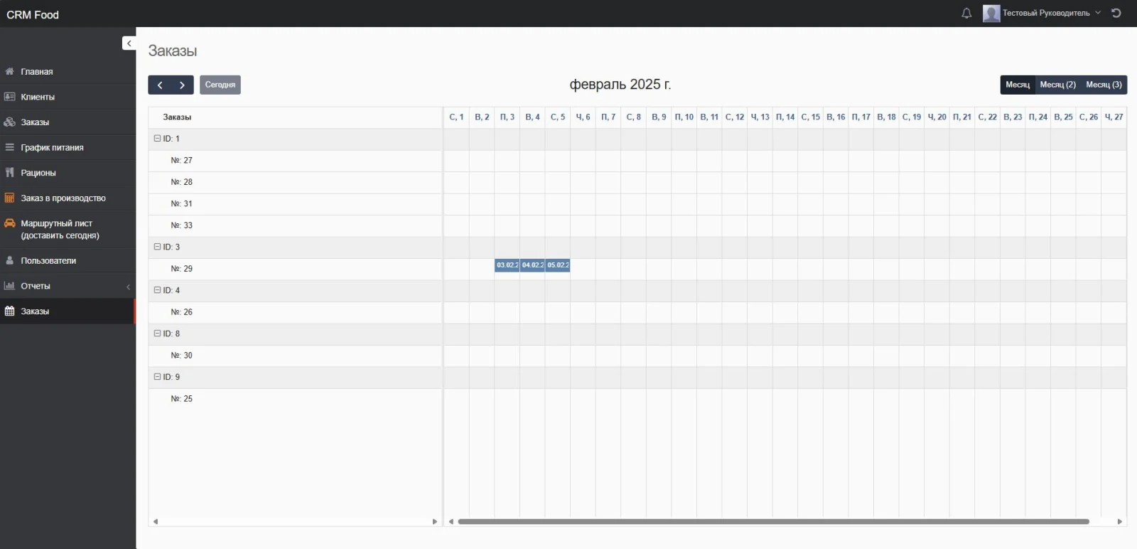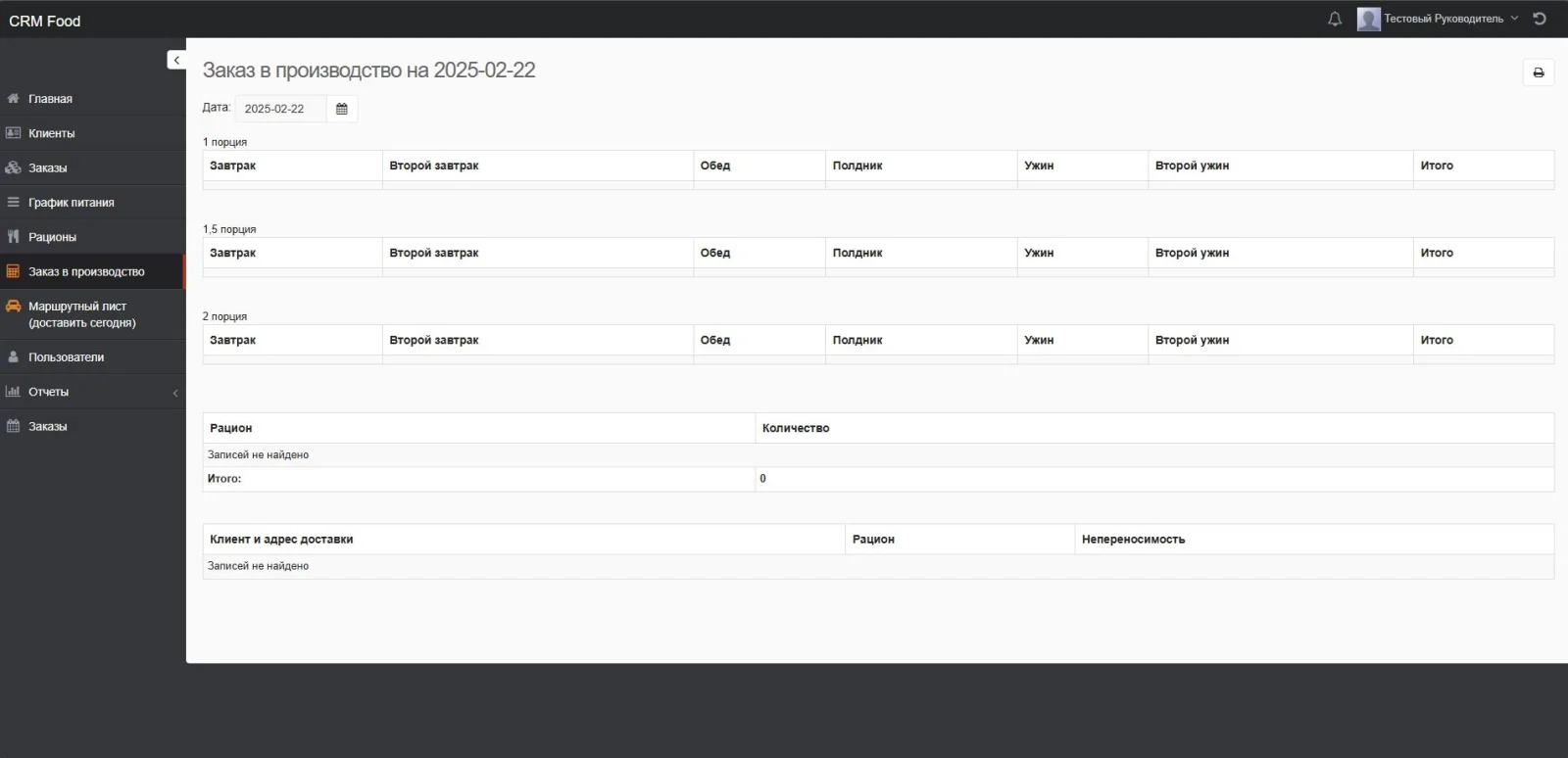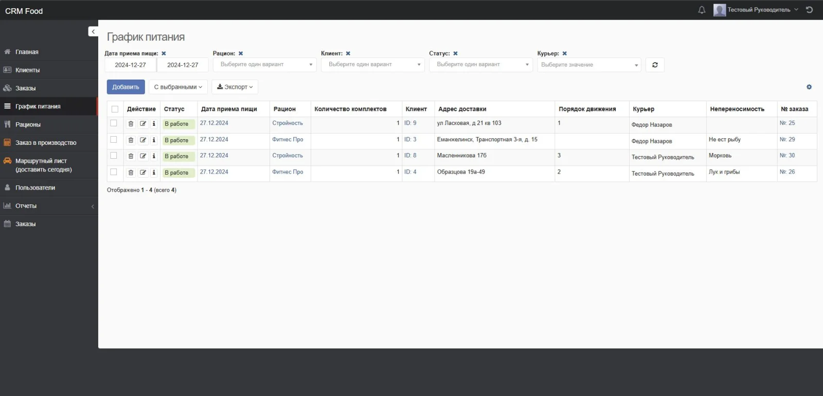 Решение на базе CRM Руководитель для учета доставки комплексного питания.