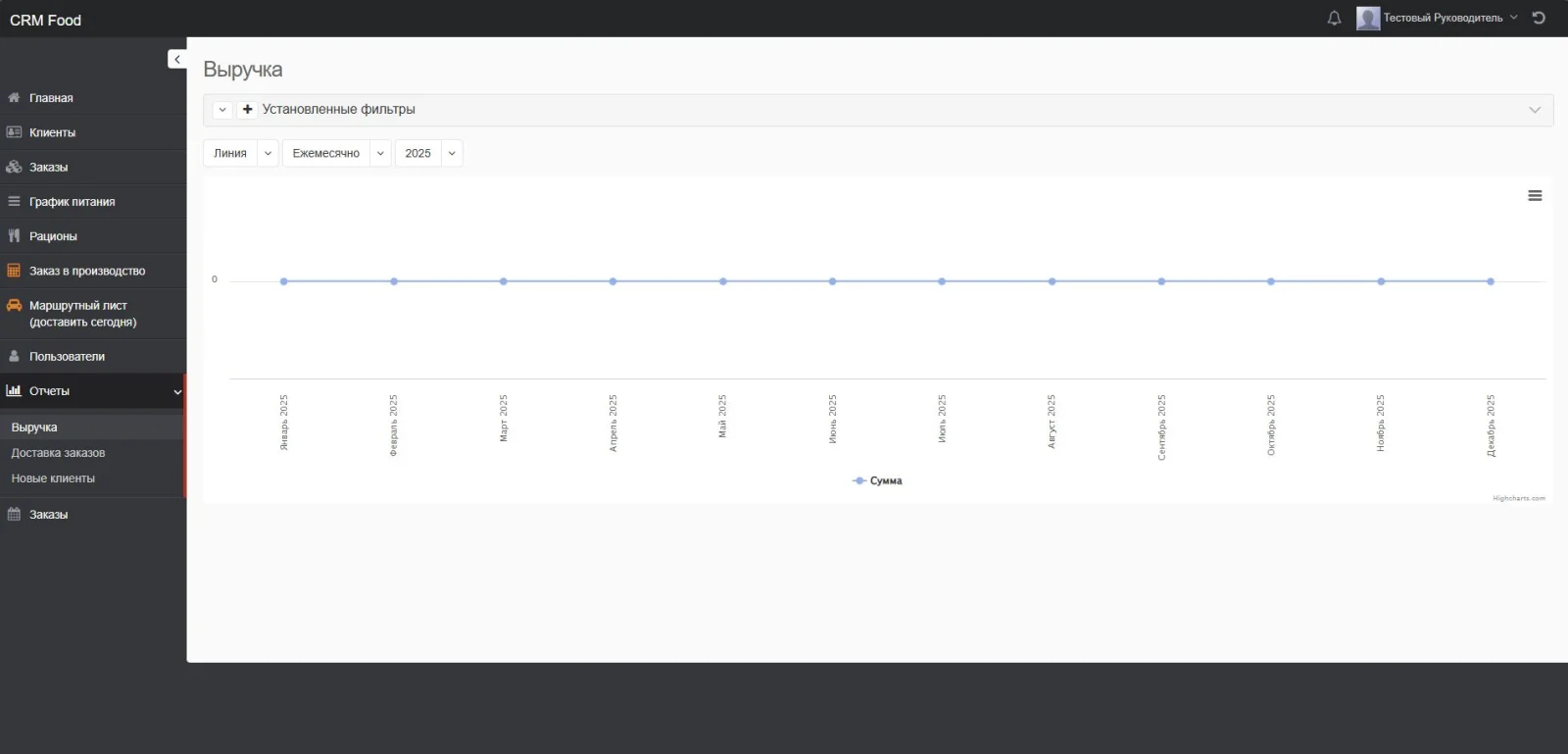 - отчеты валовой по выручке, доставке, новым клиентам
