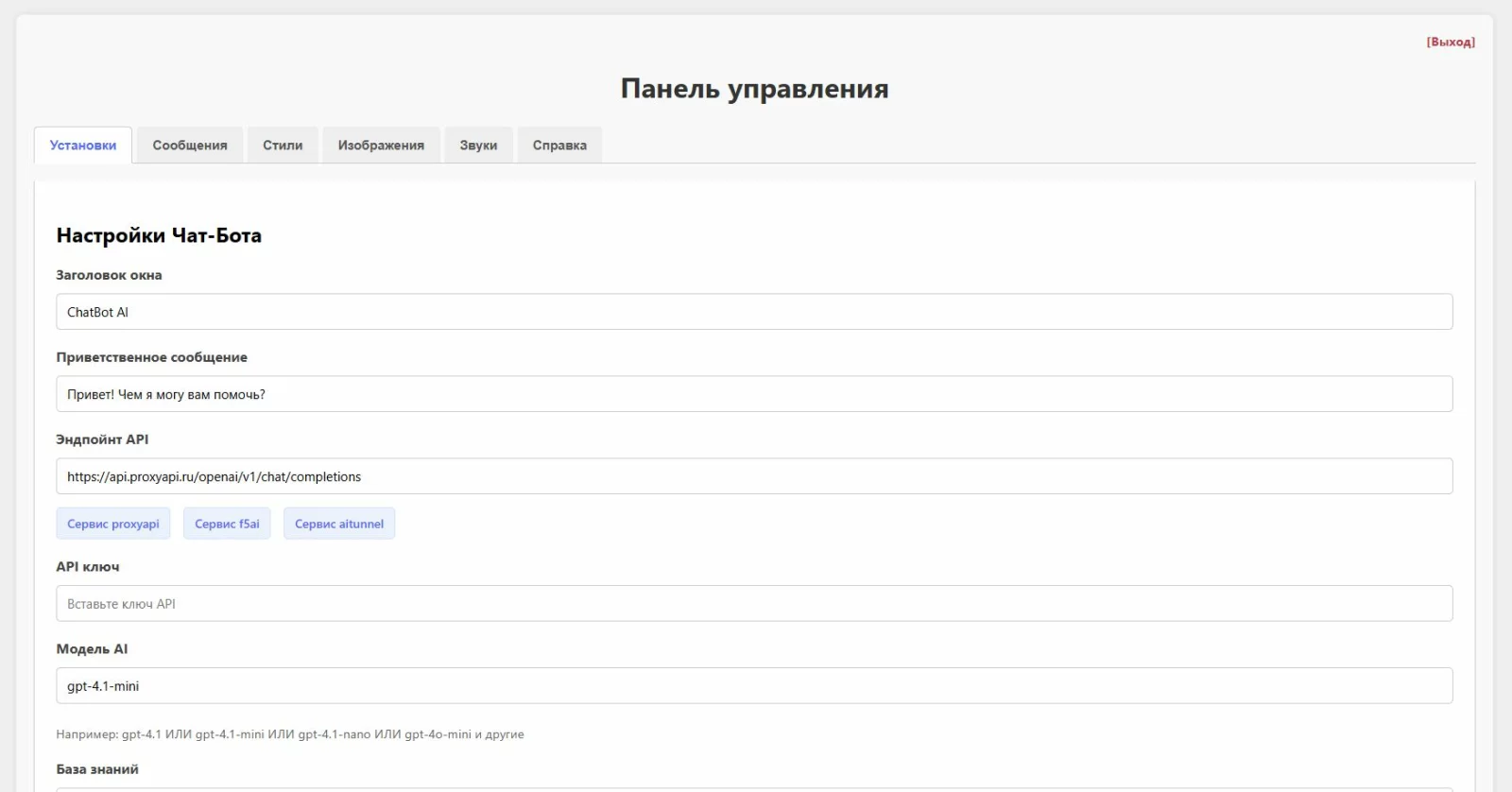 - Контекстуальные беседы: Использует системную подсказку (созданную на основе базы знаний и правил бота) и историю бесед для более релевантных ответов ИИ.