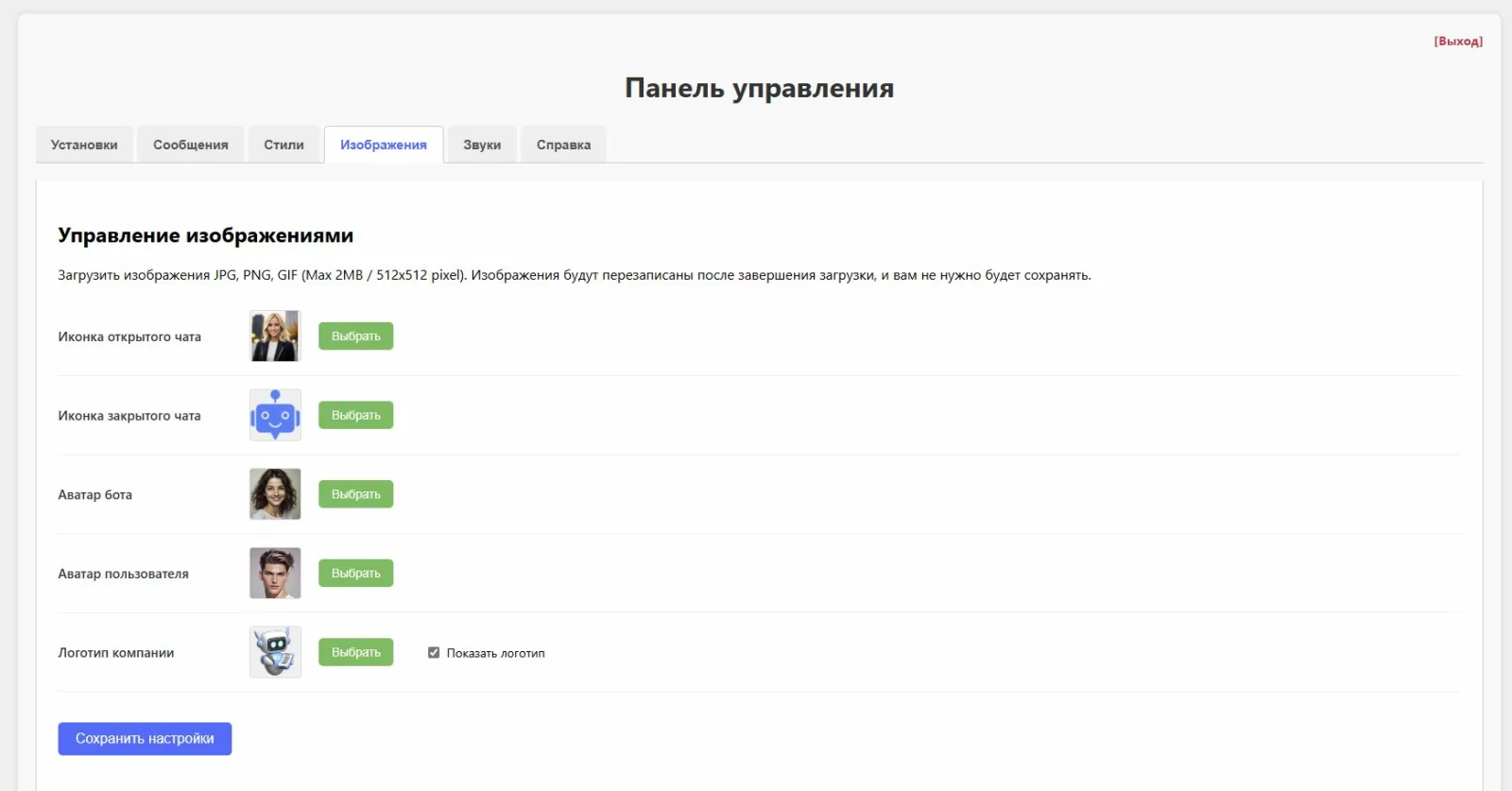 - Аватары пользователей и ботов: Настраиваемые иконки для пользователя и бота.