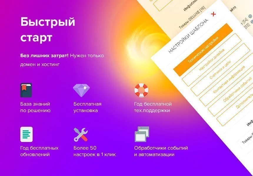 Вы получаете более 1000 вариаций сайта. На стандартной лицензии Битрикс (Малый бизнес или Бизнес) Вы можете создать 2 абсолютно разных сайта, купив всего одно решение!